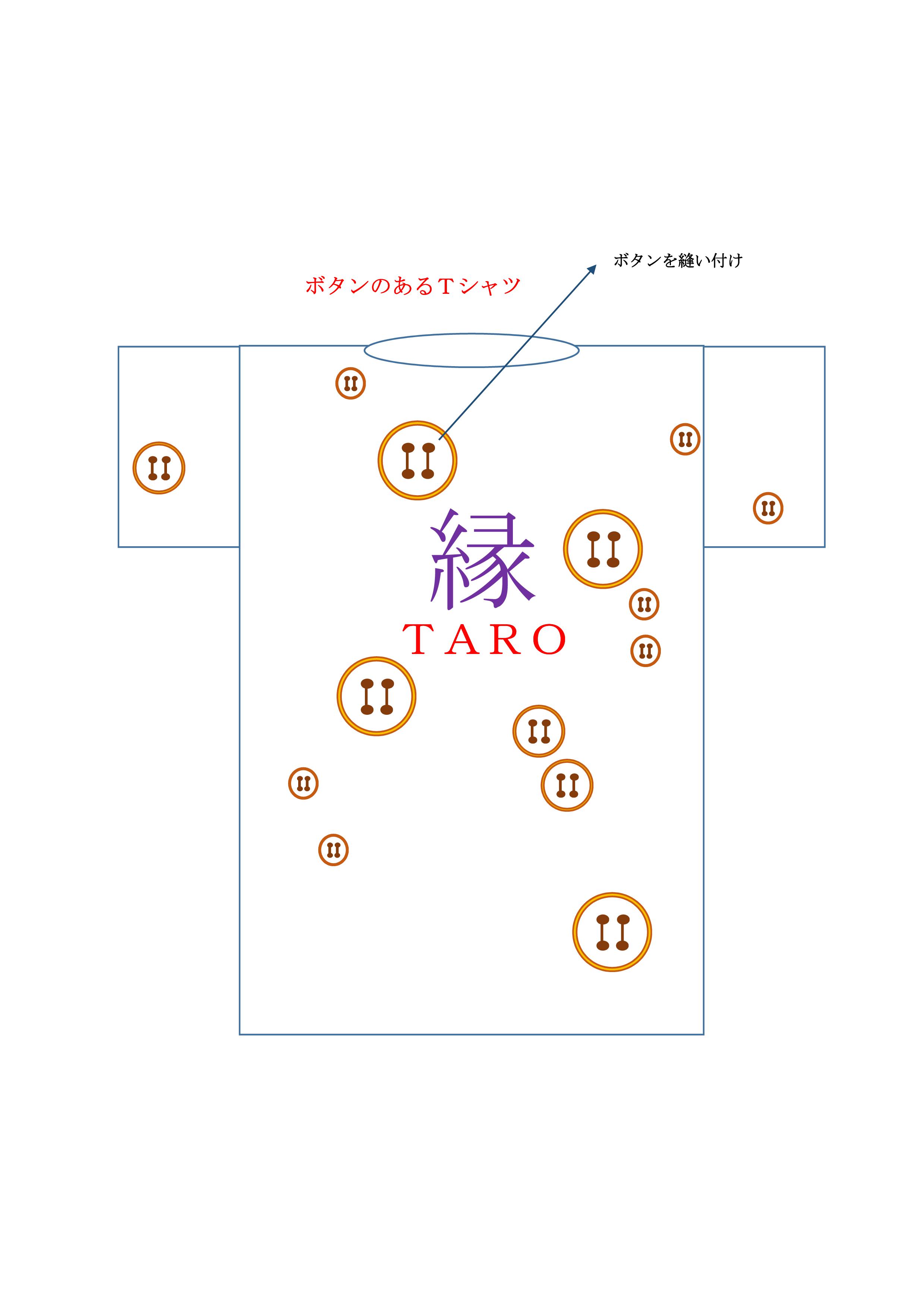 Tシャツにつけられた大小のボタンは、